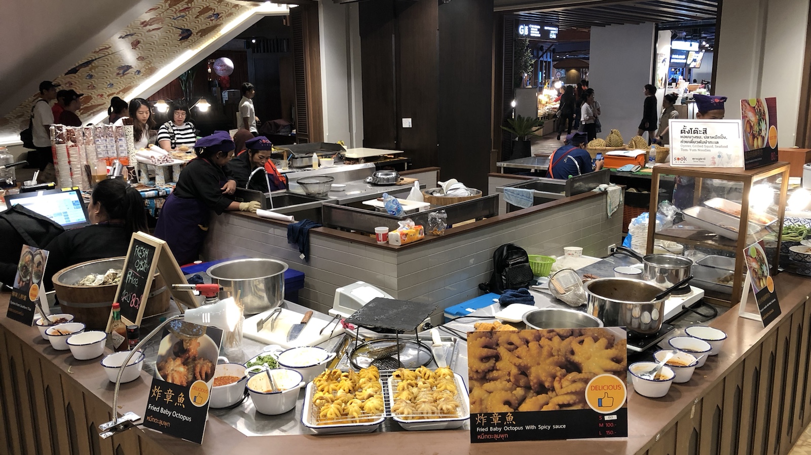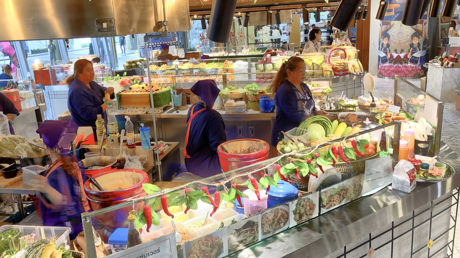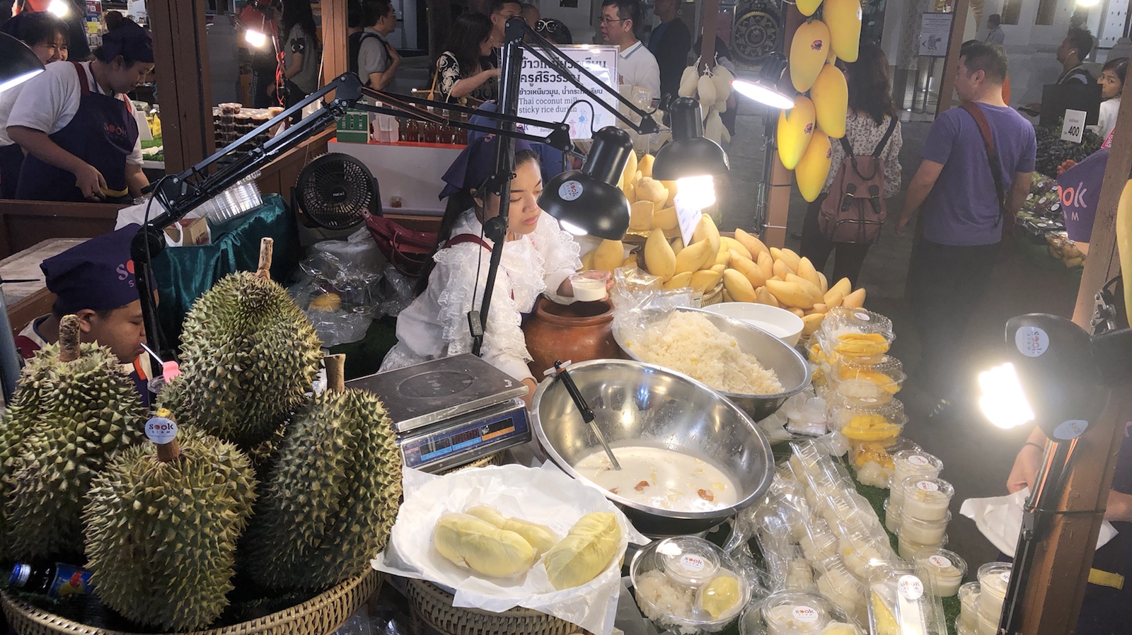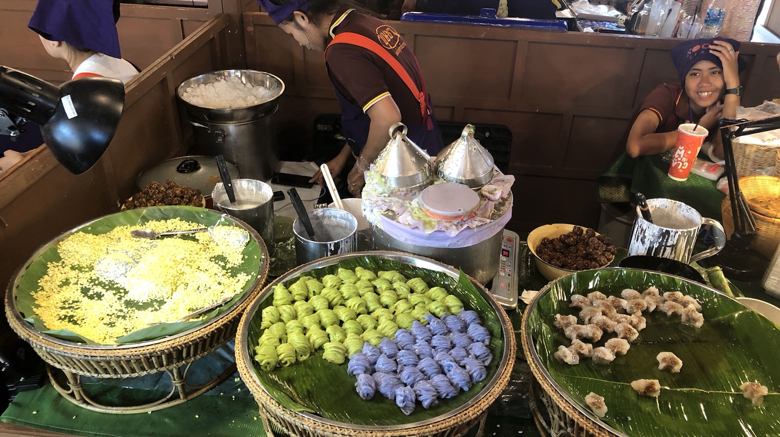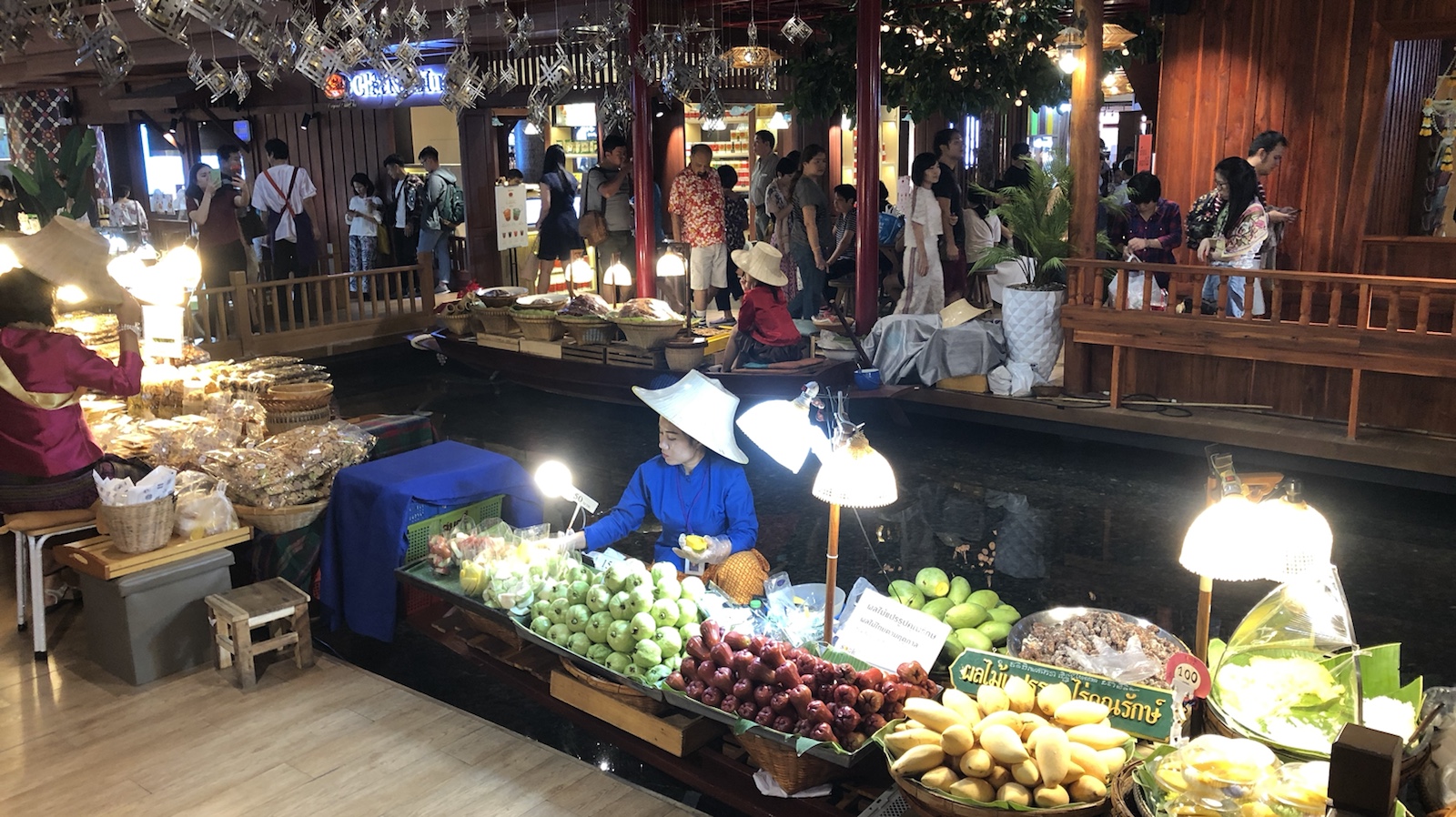 Das Icon Siam hat den besten Food Court den wir je gesehen haben. Die untere Etage des Shoppingcenter ist mit viele Liebe zu Details als Food Court eingerichtet. Er ist in einem Teil im Style von Street-Food-Ständen und Floating-Market eingerichtet und im anderen Teil als ein Food-Market. Man findet an jeder Ecke neue exotische Essenstände. Es scheint, das ganz Südostasien kulinarisch vertreten ist. Der Food Court ist so groß, wie in Deutschland das ganze Shoppingcenter. Wir sind offiziell begeistert.