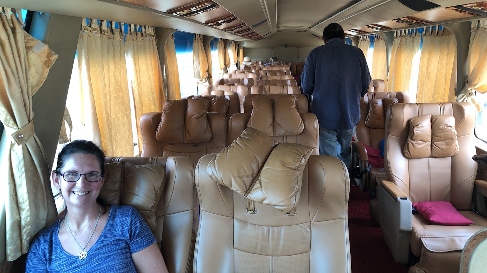 Gut das es im DoubleTree ab 6 Uhr Frühstück gibt. Wir müssen um 7.30 Uhr am Bus sein. Das sind zwar nur 500 Meter Luftlinie aber zu Fuß mit dem Gepäck kaum machbar. Also nach dem Auschecken ein Taxi geordert. Die fahren auch die kurze Strecke. Scheint öfters vorzukommen. Der Bus von AeroLine fährt vor dem Hotel Corus ab. Die Fahrt kostet ca. 20€/Person. Wir also pünktlich da. Der Typ am Schalter sagt aber frech, dass der Bus um 8 Uhr ausfällt. Wir können den um 9 Uhr nehmen. Schitt, aber was sollen wir machen. Es ist schon ärgerlich, wir hätten gemütlicher Frühstücken können, dass ist nämlich nicht schlecht im DoubleTree. Also sitzen wir jetzt eine Stunde länger rum auf den ungemütlichen Stühlen. Wie wir die Sache beobachten, sieht es so aus, als ob der 8 Uhr Bus nicht voll gebucht war. Der 9 Uhr Bus war nämlich auch nicht voll. Und wir waren nicht die einzigen die eine Stunde gewartet haben.