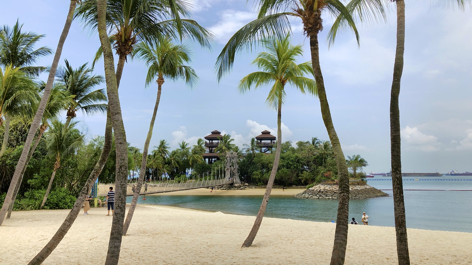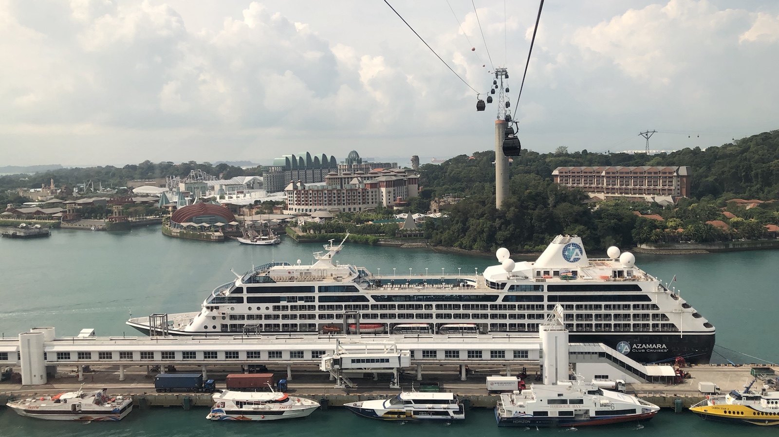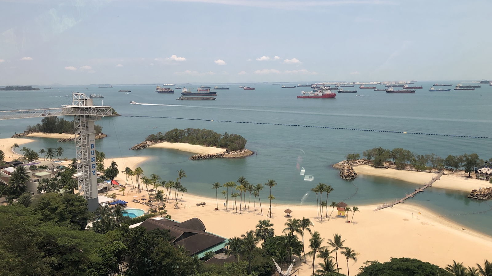 Nach dem Frühstück ging es nach Sentosa. Dies ist ein kleine Insel vor Singapur und ist vollgebaut mit sehr teure Hotels und Vergütungsstätten. Zu der Insel kommt man unter anderen auch mit einer Seilbahn. Den Spaß wollten wir uns nicht entgehen lassen. Umgerechnet 50€ für hin und zurück und quer durch. Es gibt nämlich eine zweite Seilbahn die quer über die Insel geht.
