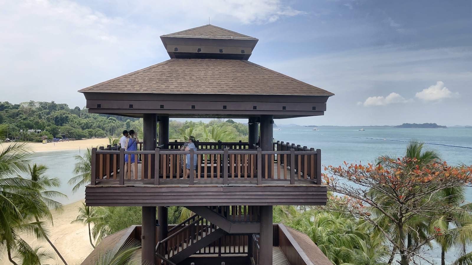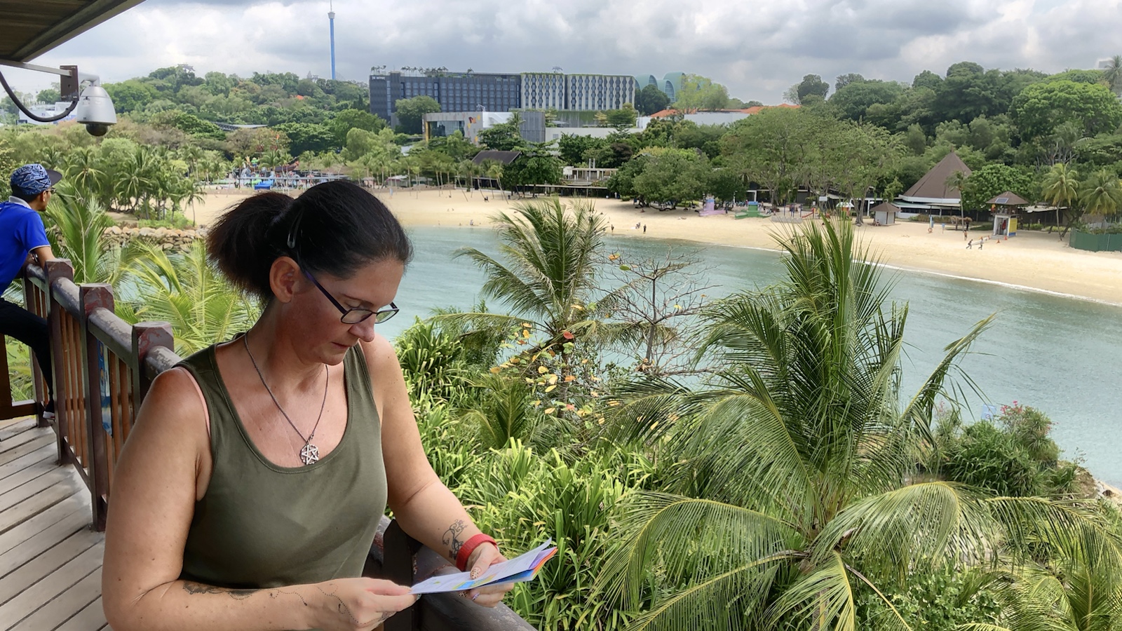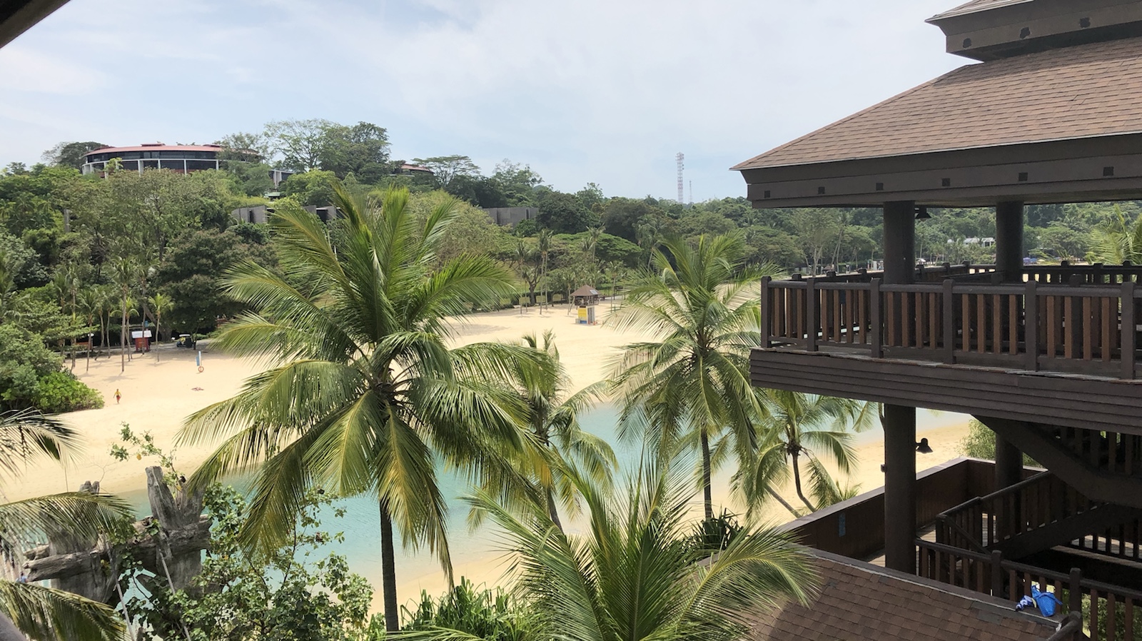 Nach dem Frühstück ging es nach Sentosa. Dies ist ein kleine Insel vor Singapur und ist vollgebaut mit sehr teure Hotels und Vergütungsstätten. Zu der Insel kommt man unter anderen auch mit einer Seilbahn. Den Spaß wollten wir uns nicht entgehen lassen. Umgerechnet 50€ für hin und zurück und quer durch. Es gibt nämlich eine zweite Seilbahn die quer über die Insel geht.
