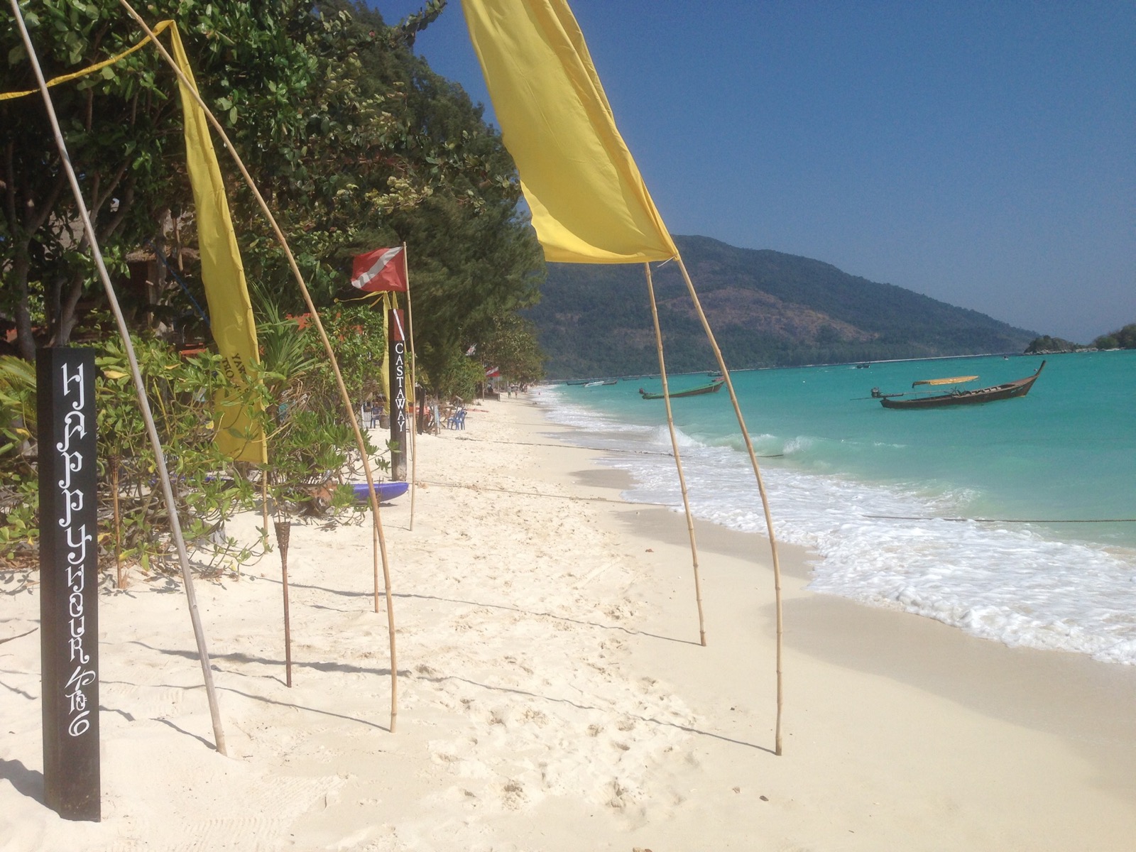 Leider waren wir nicht schon fruher hier. Es gibt nichts mehr von der Abgeschiedenheit die die Insel mal gehabt hat. So voll haben wir es in Thailand noch nie erlebt. Aber die Insel hat trotzdem was. Man findet hier alles was man braucht. Sogar Ruhe, wenn man will, jedenfalls am Tag. Und Abends brummt der Baer. Leider auch ein bisschen zu sehr. Jede Nacht von 2 bis 5 Uhr morgens drönen die Bässe. Die Bar neben an hat irgendwie ein Problem. Sobald es ruhig wird in der Nacht drehen die ihre Musikanlage auf. Schlafen ist kaum moeglich zu der Zeit. Es wurde auch schon die Polizei eingeschaltet aber die Bar, die den Krach macht laesst nicht ab.