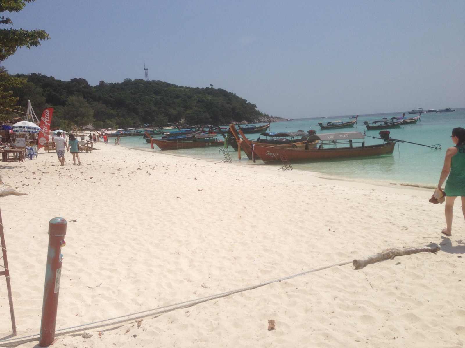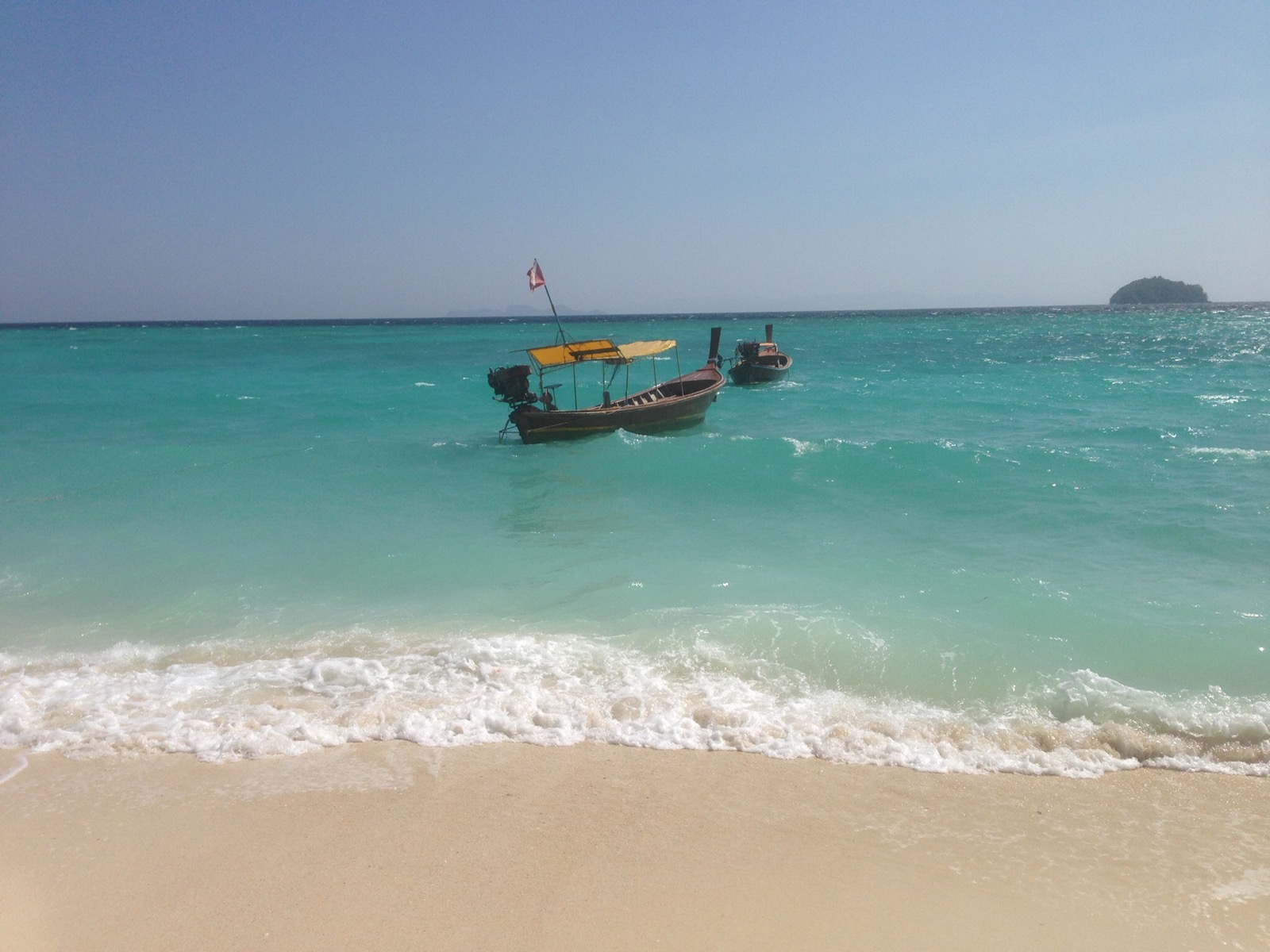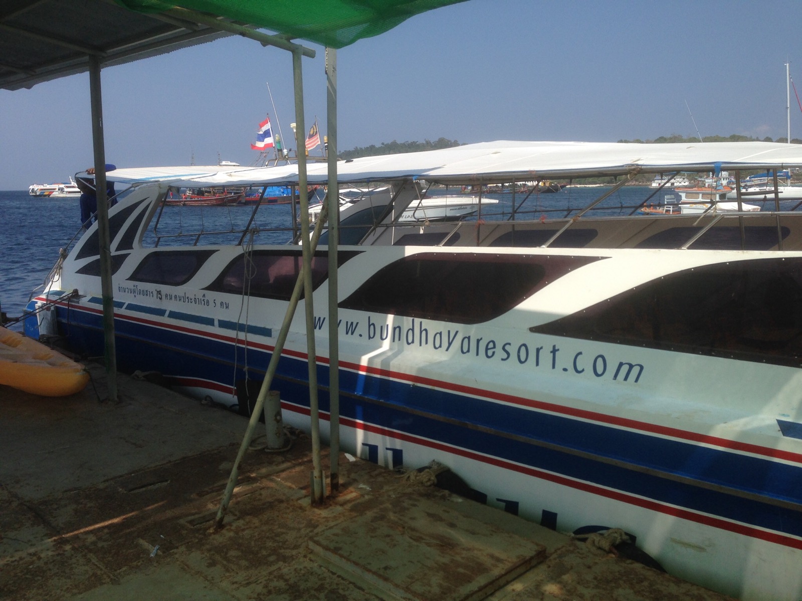 Die Ankunft in Thailand war chaotisch. Wir mussten von dem Big Boat auf kleine Longtails umsteigen, weil das grosse Boot nicht bis zum Strand fahren konnte. Zuerst haben die eine Seite vom Boot geoeffnet von dort sind einige Leute raus, dann wurde gesagt, dann wurde gesagt, das wir die andere Seite nutzen sollten.Dort war eine schwimmende Plattform. Wir sind da raus. Dann hiess es doch wieder zurueck und gleich danach doch wieder auf die Plattform.