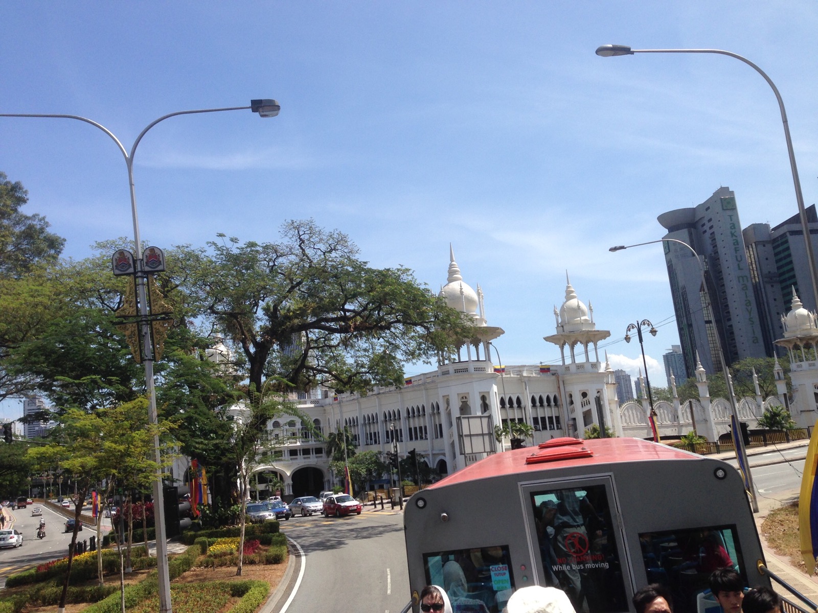 Der nächste Bus war ein offener Doppeldecker. Wir sind gleich hoch gegangen aber es waren alle Plätze besetzt. Ganz vorn vor der Glasscheibe war noch ein bisschen Platz auf den Boden. Haben uns dort hingehockt. Die zweite Station nach dieser war der KL Sentral. Dort sind viele ausgestiegen und wir haben uns schnell 2 Sitzplätze unter freien Himmel ergattert. Von denen sind wir auch die nächsten 2 Stunden nicht mehr hoch. Von dem Platz hat man alles gut gesehen und bei der Hitze durch irgendwelche Parks laufen wollten wir auch nicht. So haben wir eine schöne Stadtrundfahrt gemacht und sind nach ungefähr 4 Stunden an dem Punkt ausgestiegen, an den wir eingestiegen sind. Danach kurz was beim Mc gegessen und ab ins Hotel in den Pool. Habe ich schon erwähnt, das es hier ein Paradies für FastFood Junkies ist. Ein Mc-Menü kostet 2€.