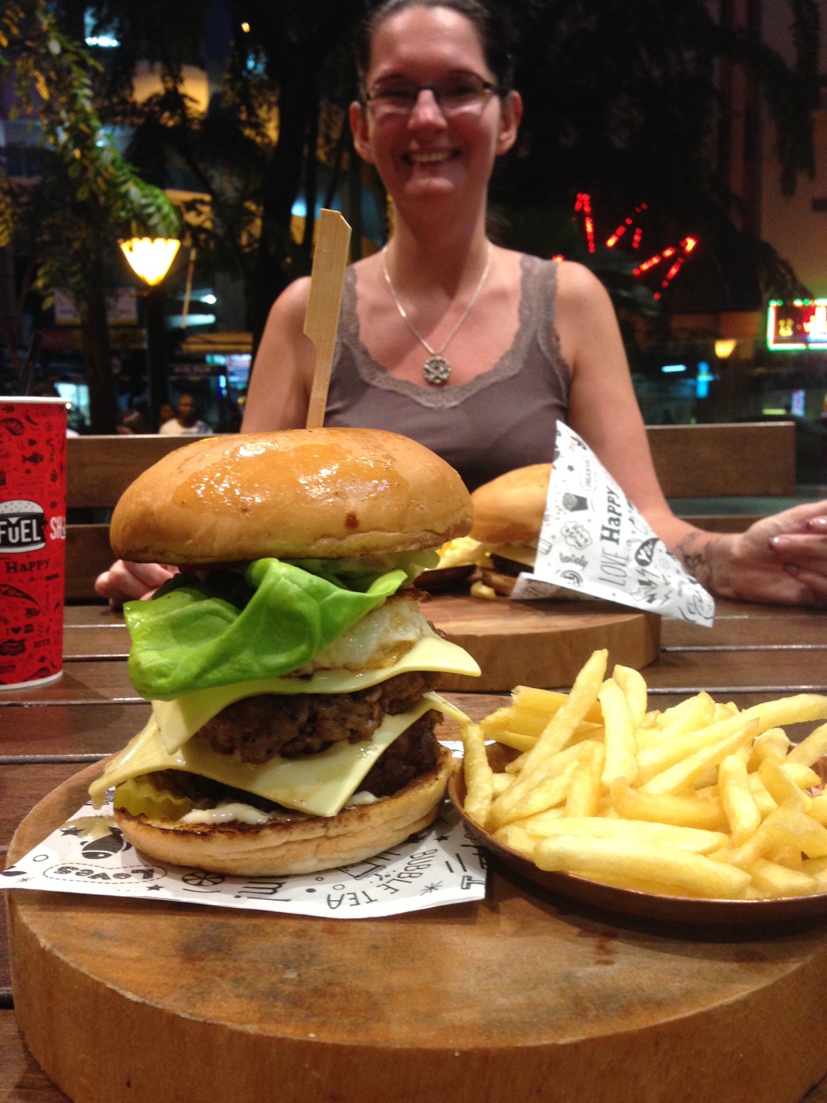 Wir haben uns im Reiseführer, natürlich der von Stefan Loose, das Federal Hotel rausgesucht. Das war das Nachbarhotel von unseren letzten Aufenthalt hier. Wir haben sogar noch ein Zimmer bekommen. Das Deluxe Zimmer hier kostet nur 10€ mehr als unser Bambusbungalow auf Ko Lipe. Und hier haben wir Frühstück inklusive. Ko Lipe war eh das Teuerste, was wir je in Thailand gesehen haben. Aber leider nicht das Beste. Obwohl, schön wars auf der Insel. Nach dem Einchecken im Hotel erst mal was essen gegangen. Australisch war angesagt. Nun hoffen wir auf eine ruhige Nacht.