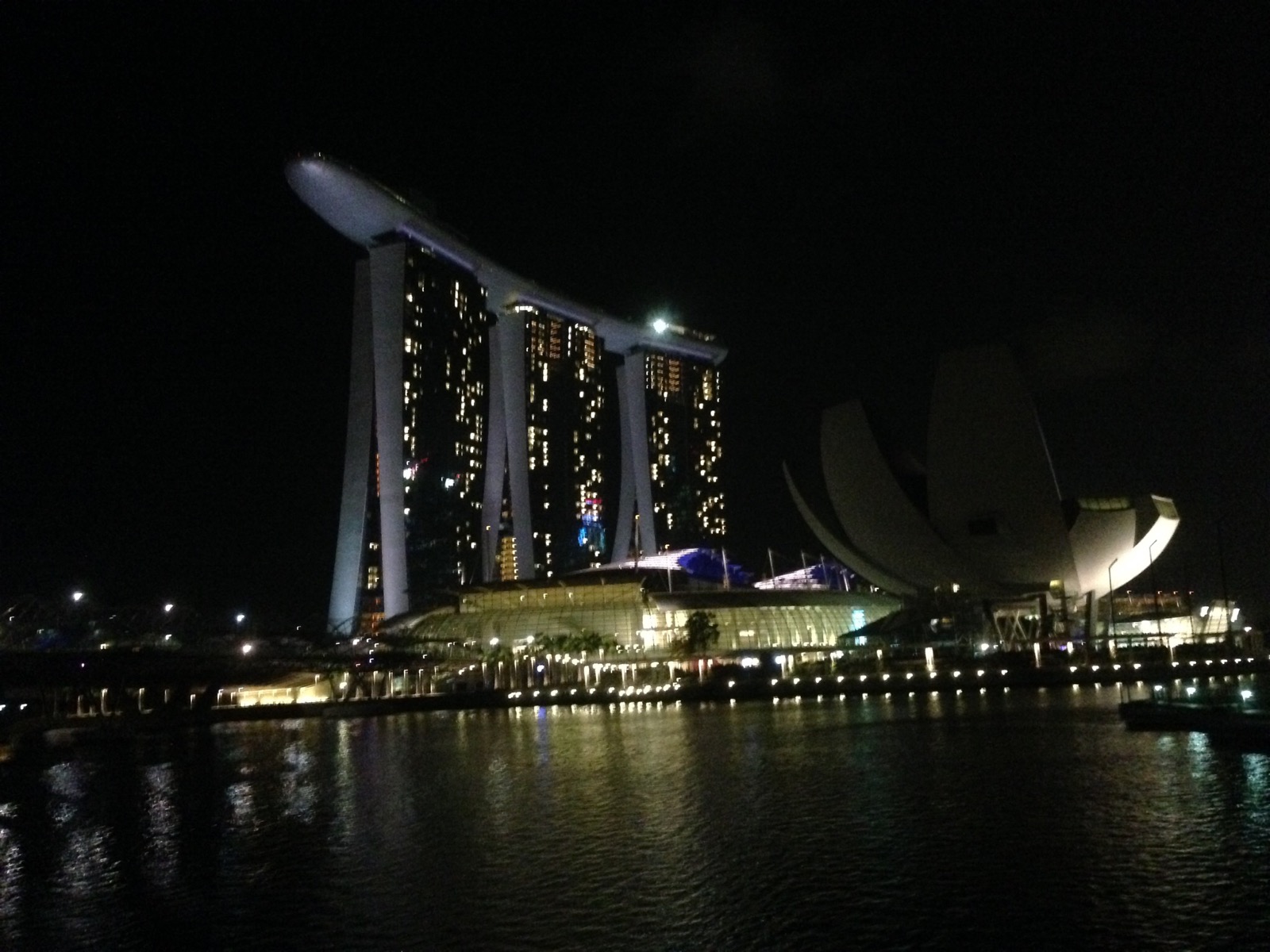 Der Bus hat dann aber doch noch pünktlich an der Haltestelle gehalten. Wir haben dann erst mal Geld getauscht und haben uns ein Taxi zu unserem reservierten Hotel, dem Marina Bay Sands genommen. Ab 15 Uhr war das einchecken möglich und es war kurz vor 15 Uhr.