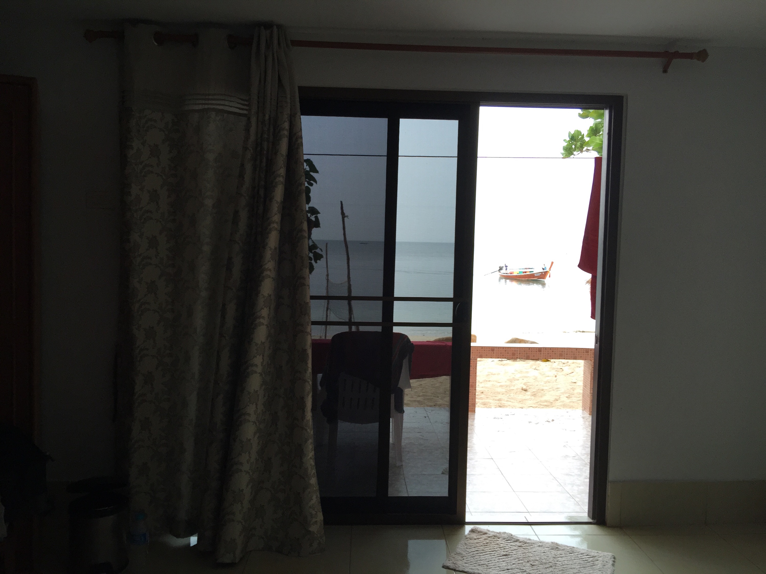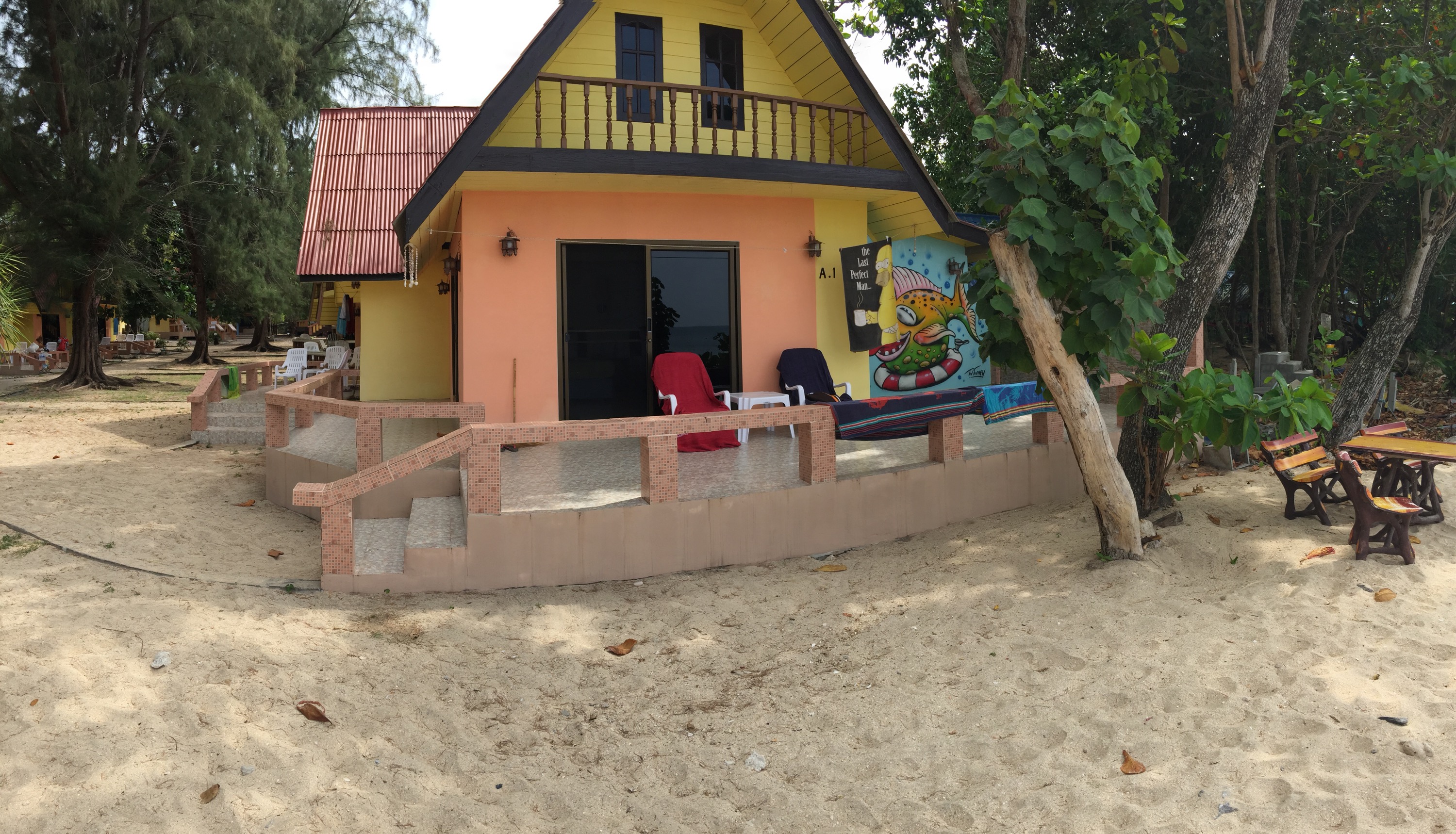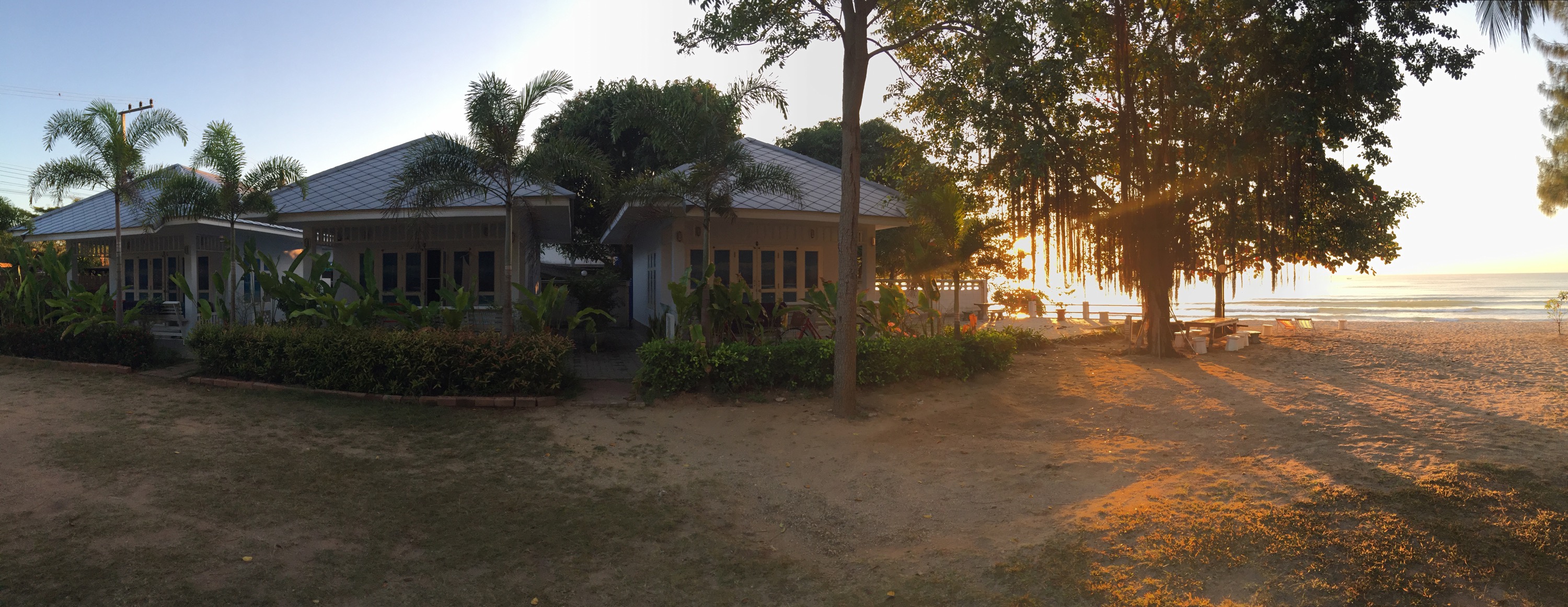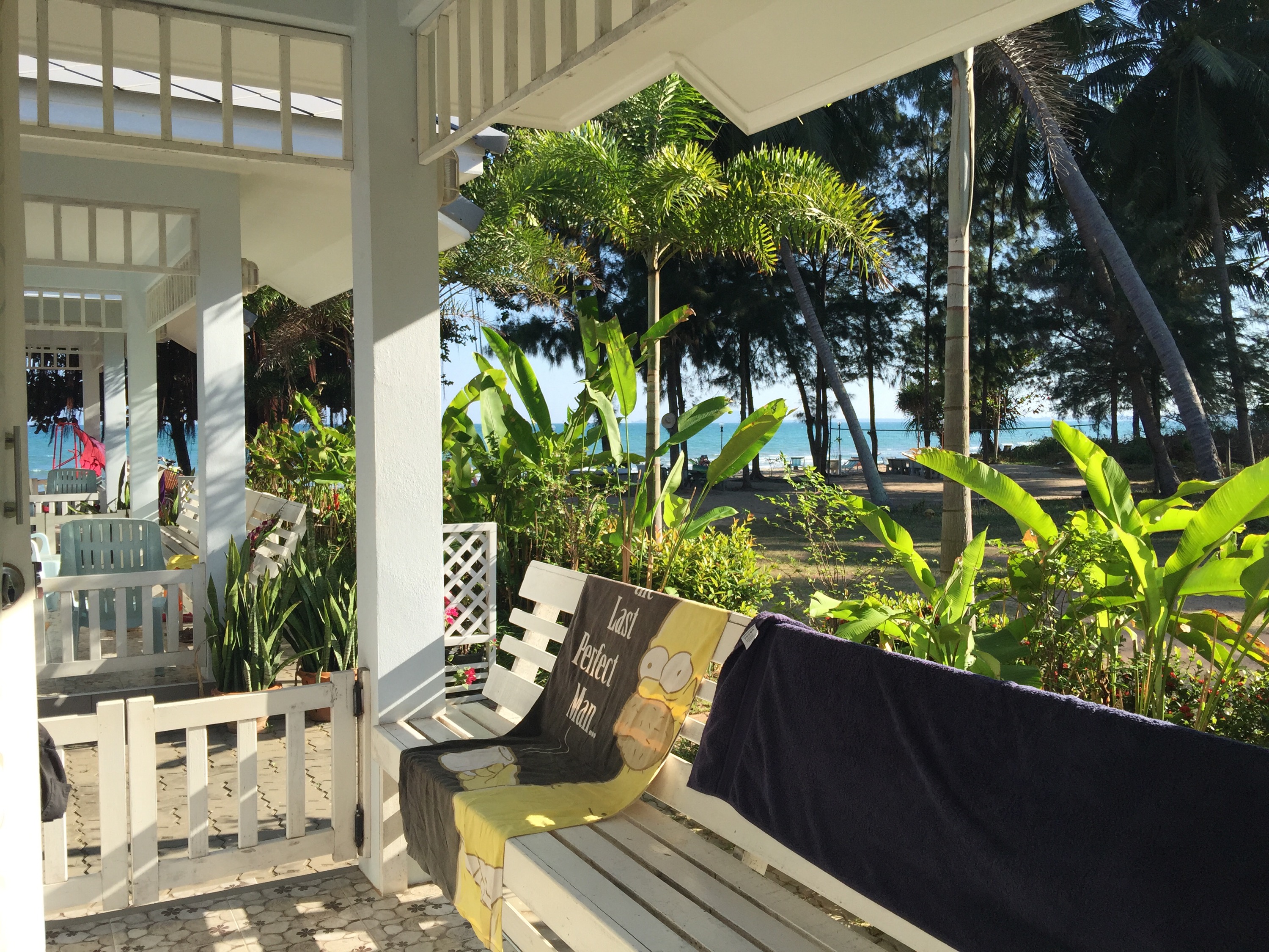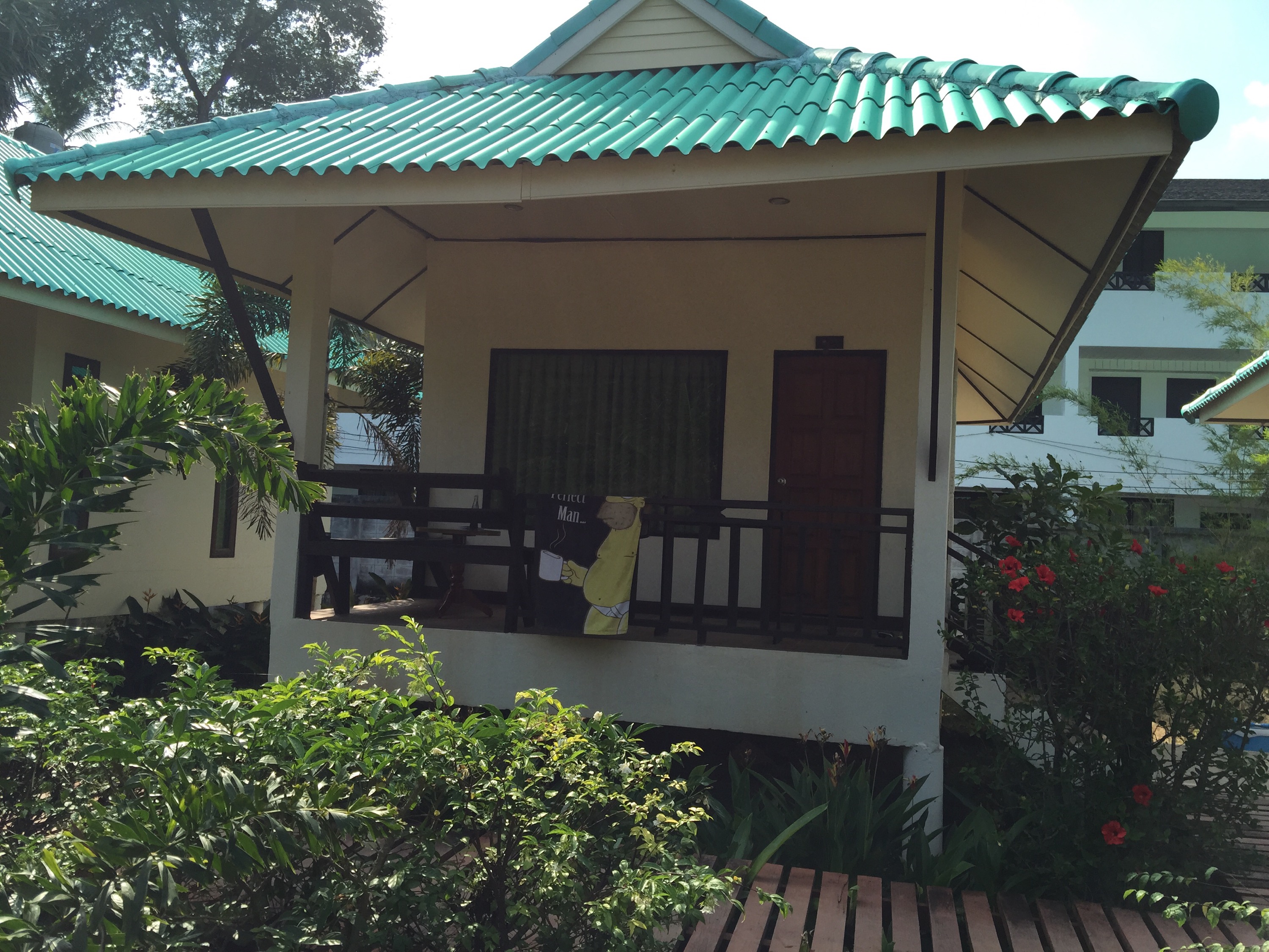 Die Zugfahrt war besser als gedacht, weil nicht so kalt wie gewöhnt. Wir kamen auch pünktlich um 14.20 Uhr in Ban Krut an. Am Bahnhof haben wir uns ein Mopettaxi genommen und waren keine 5 Minuten später an dem Resort, welches wir uns vorab rausgesucht hatten.