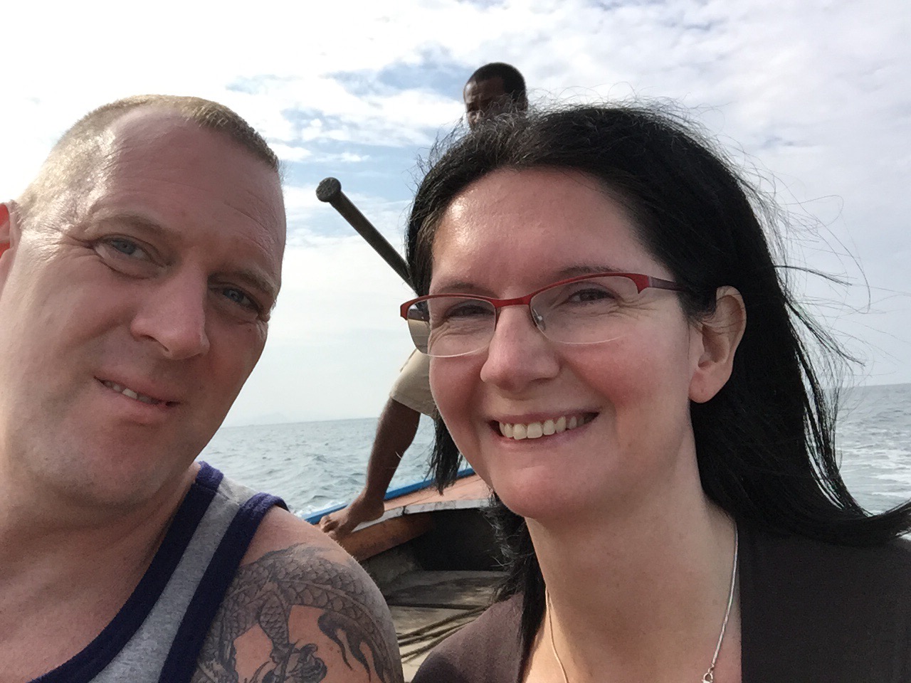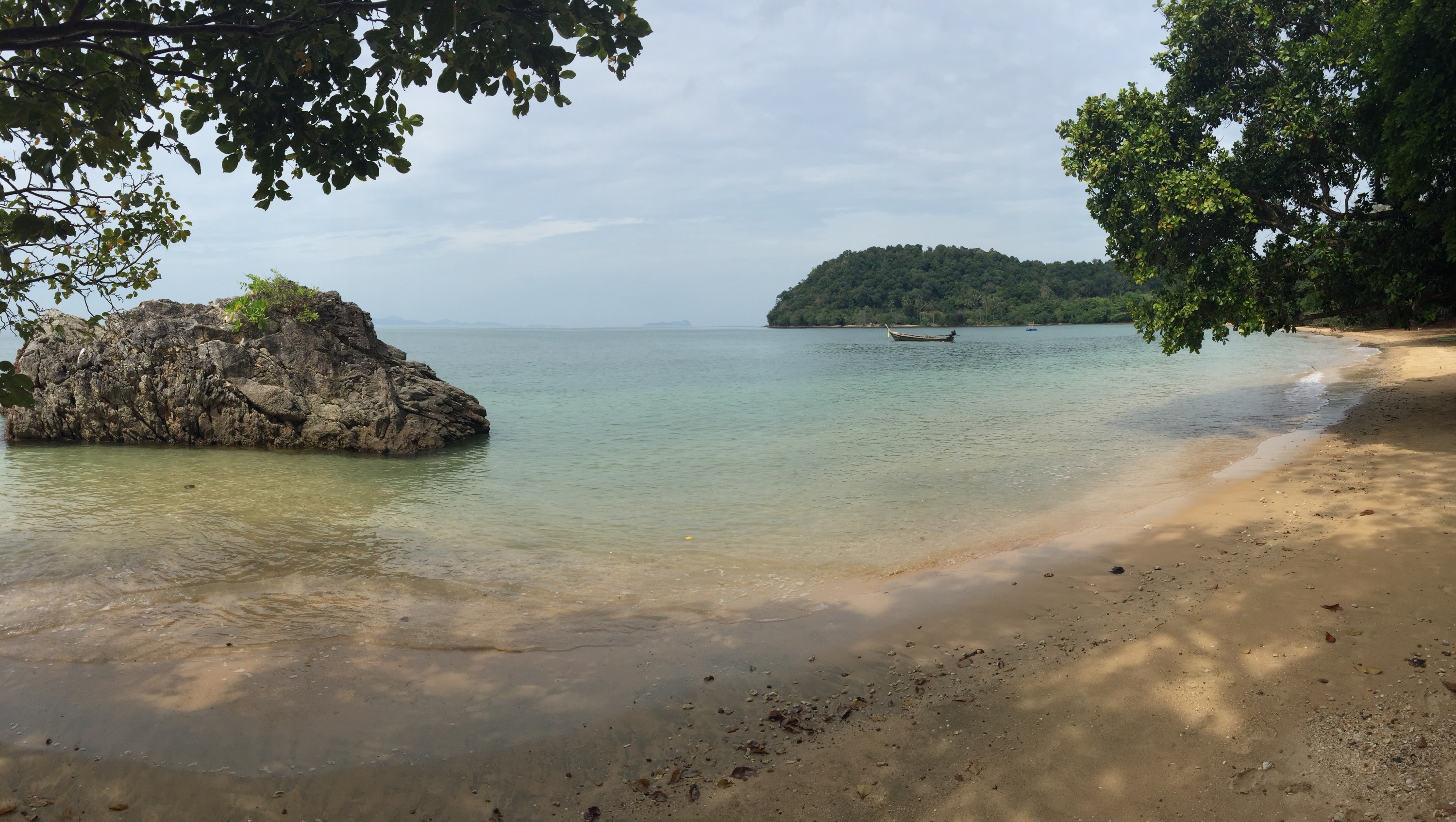 Das Boot mit dem wir fahren, fährt in 2 Stunden von Ko Lanta nach Krabi. Auf halber Strecke liegt Ko Jum. Das heißt, es hält auf See an und Longtailboote kommen längsseits um die Leute von Bord zu holen. Obwohl wir ruhige See hatten war es eine wacklige Angelegenheit. Wir mussten uns auf dem Boot schon entscheiden, zu welchem Resort wir wollen. Jedes Resort schickt sein eigenes Boot. Ich habe vorher im Loose ein wenig nachgelesen und wir haben uns für das Andaman Resort entschieden. Es liegt mittig am Andaman Beach und hat auf den Bildern im Internet einen guten Eindruck gemacht. Wenn es uns nicht gefällt können wir ja immer noch wo anders hin.