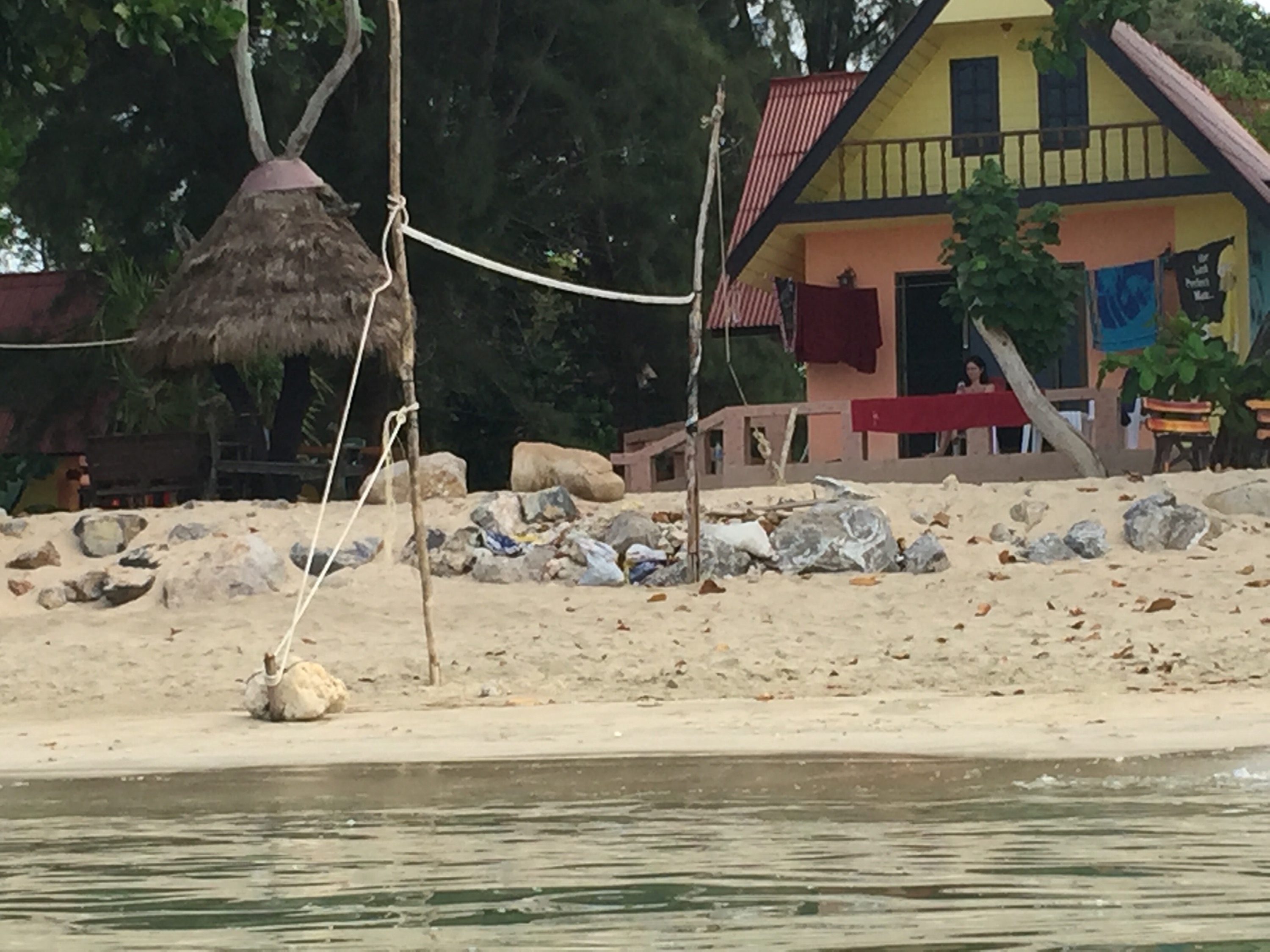 Es stellte sich heraus, das wir noch zum Hat Ting Ray fahren. An diesen Strand waren wir auch noch nicht. Dort gibt es 2 am Berg gebaute Anlagen und von der einen haben wir noch ein Pärchen abgeholt die zum Boot wollten.