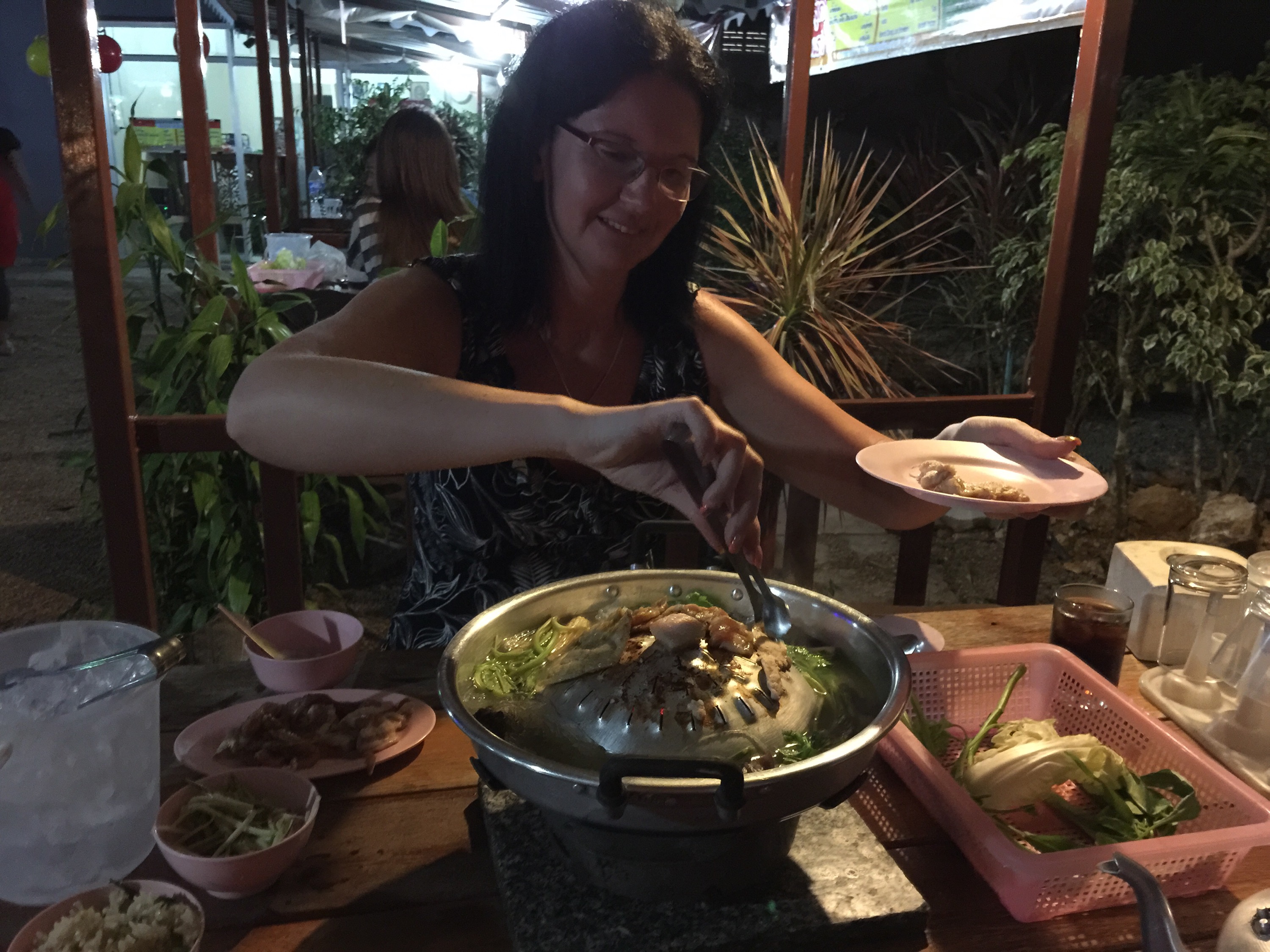 Gleich nebenan gab es ein Restaurant für Thai Style BBQ. Natürlich sind wir dort hin zum Abendessen. Man bekommt eine kleine Topf- Grillkombination auf den Tisch und holt sich alle Zutaten roh vom Büfett, diese man dann selbst am Tisch zubereitet. Lecker.