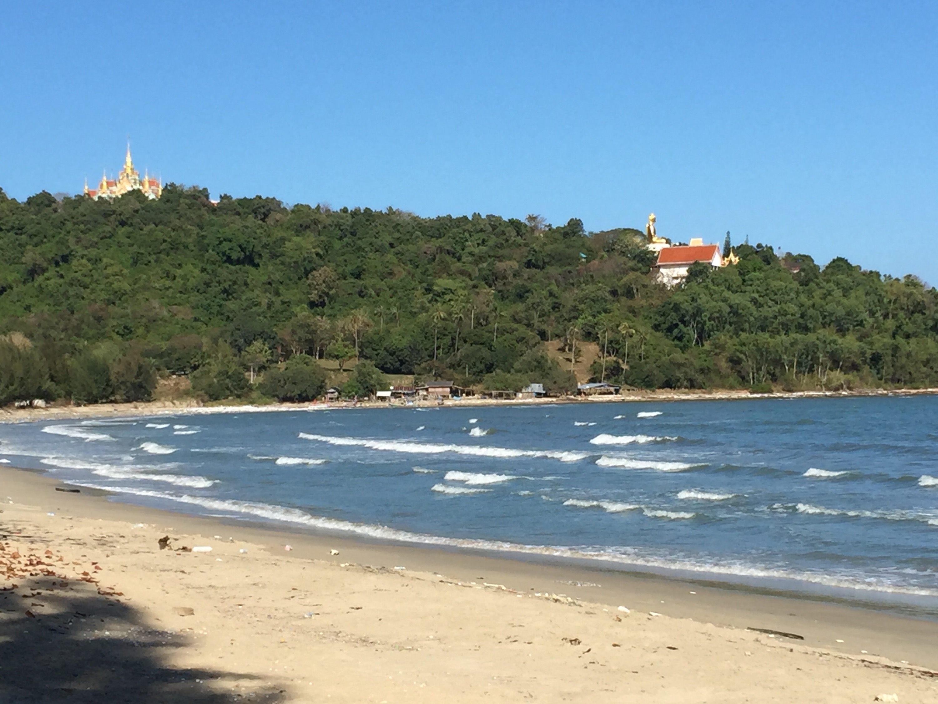 Wir sind in Ban Krut. Was kann man über diesen Ort sagen. Ban Krut liegt ca. 150 km südlich von Hua Hin und hat einen noch ruhigen 15 km langen Strand. Wir finden es ist eine Mischung aus einem ursprünglichen Thailand und einer deutschen Kolonie. Hier geht es unter der Woche noch beschaulich zu. Vieles ist nur in Thai angeschrieben und es ist auch nix für „Qualitätstouristen“ auf schön getrimmt. Man sieht fast nur deutsche Rentner die hier überwintern und einige Touristen die die Ruhe an diesem schönen Strand suchen. Am Wochenende ist es weniger ruhig. Dann fallen Scharen von Thais ein, die hier ihr Wochenende verbringen.