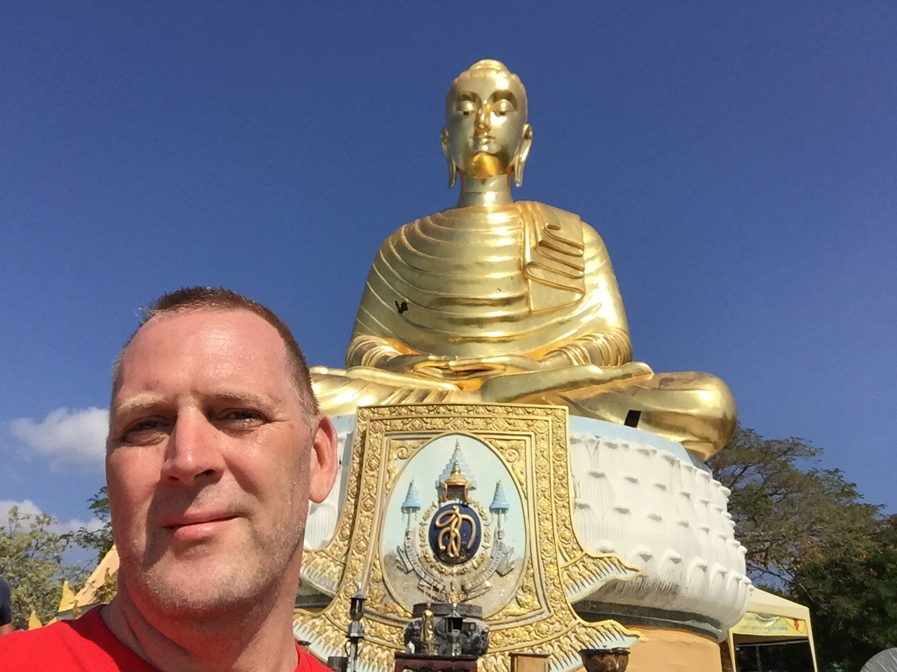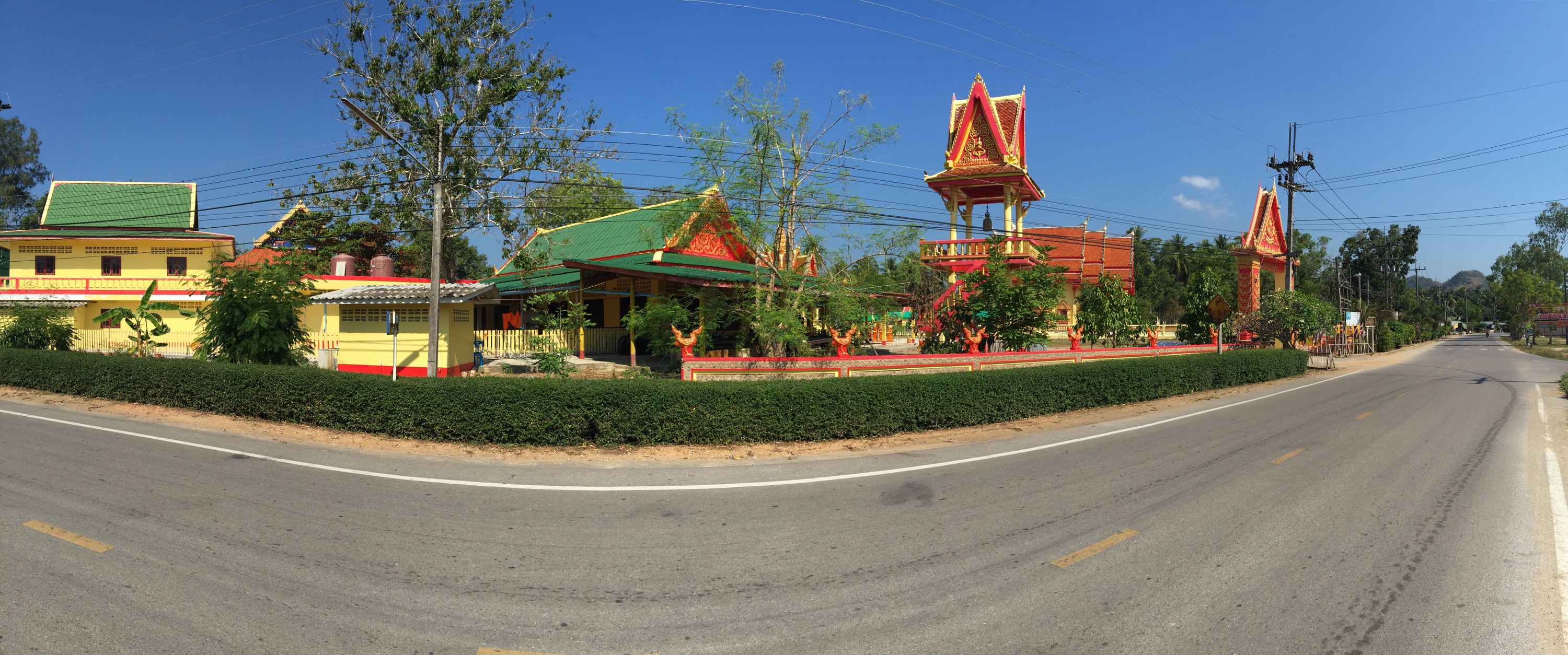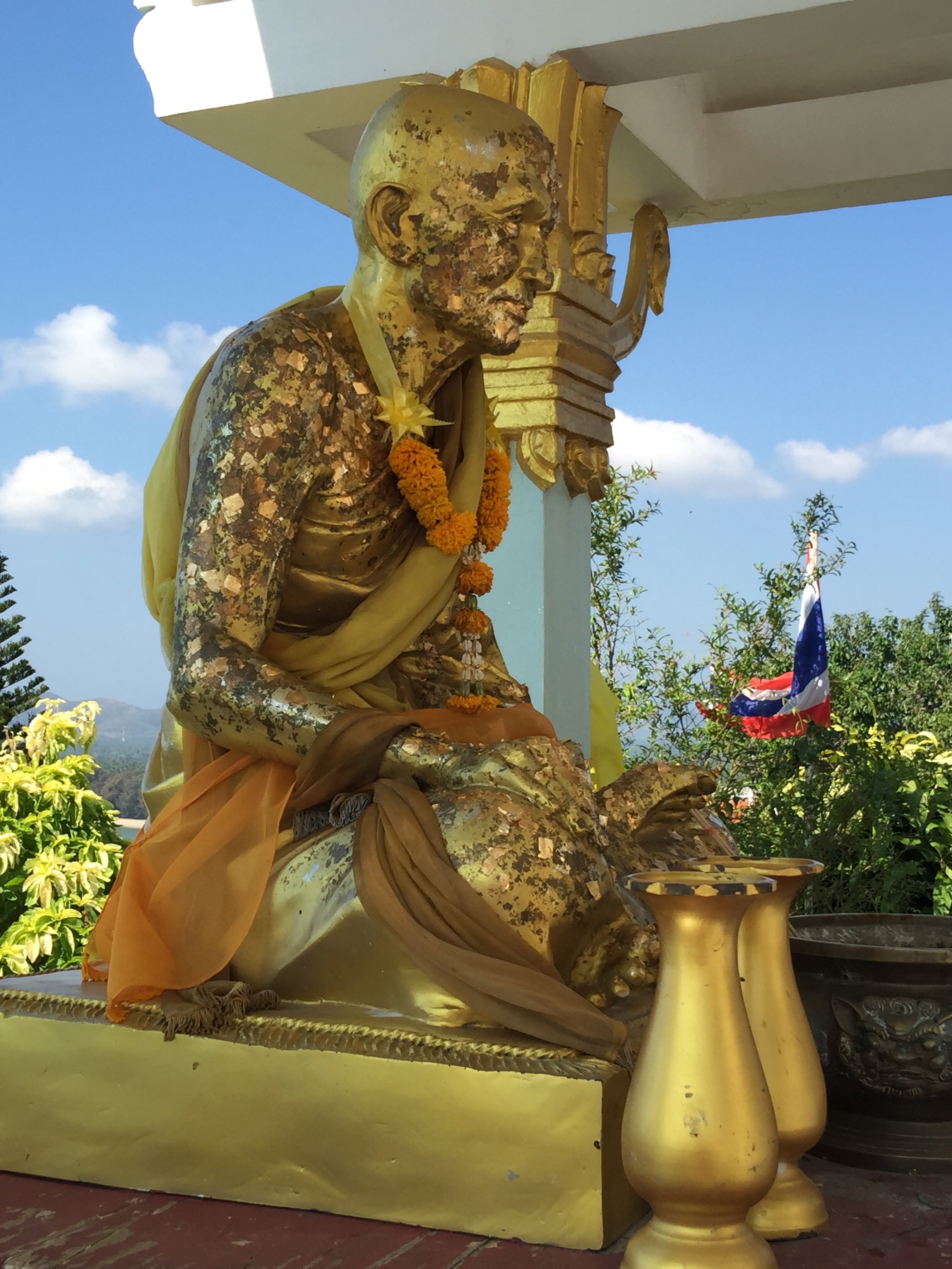 Heute stand ein Besuch des Wat Khao Thong Chai und des Big Buddas auf dem Kulturprogramm. Beide tronen auf einem Berg über den Strand. Die beste Möglichkeit dort hin zu kommen ist per Fuß. Es sind ca. 2km teils bergehoch und ein paar Treppen. Aber die Anstrengung wird belohnt.