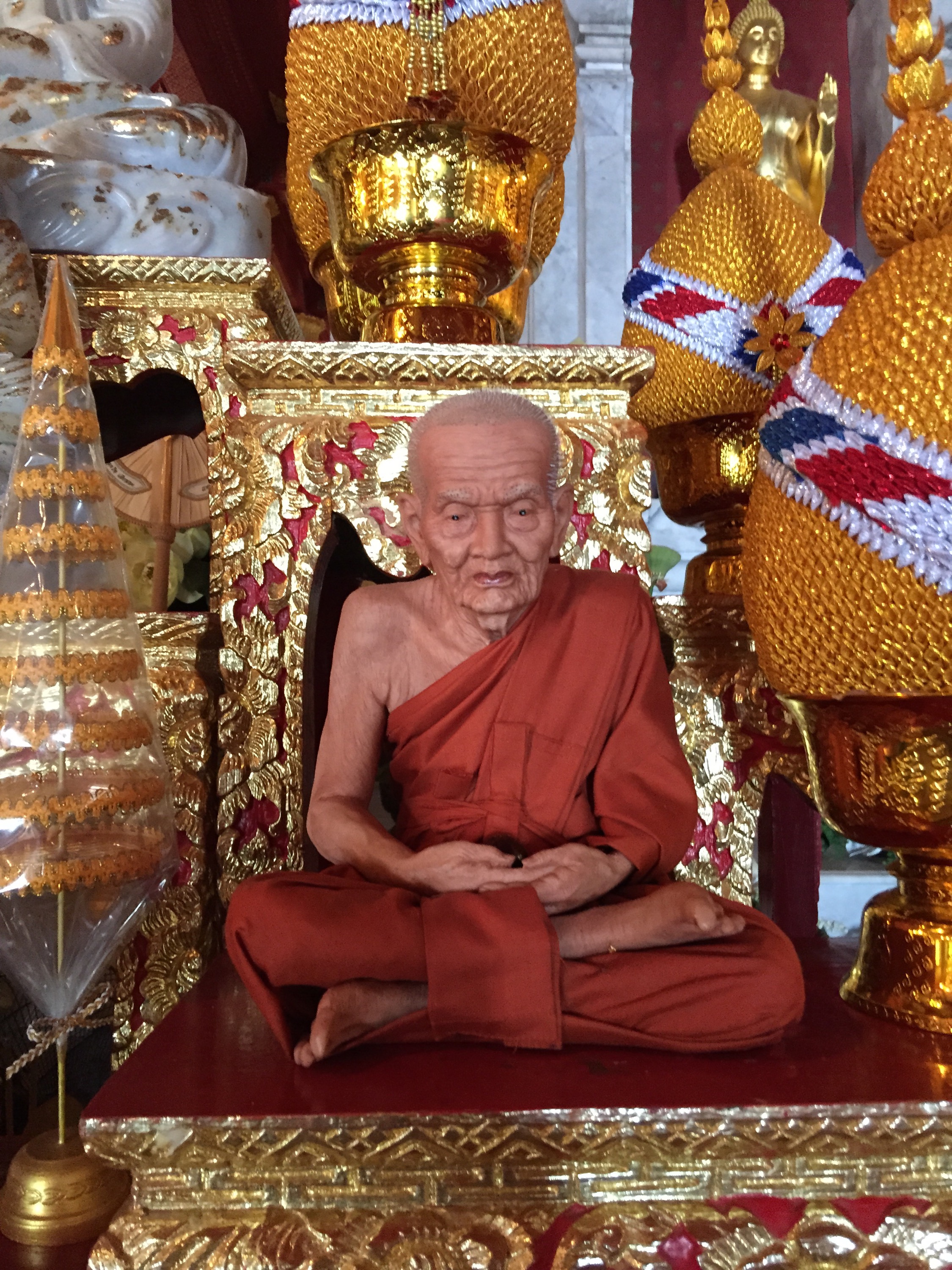 Am Vormittag stand eigentlich etwas Kultur auf dem Programm. In der Sonne aalen könnte ich mich wegen dem neuen Tattoo eh nicht, also habe ich gedacht, besuchst du halt mal den Königspalast. Der ist drei Stationen mit Boot weiter. Also ordentliche Sachen angezogen, das heißt, eine Hose die über das Knie geht und ein T-Shirt mit kurze Ärmel. Müsste normalerweise reichen. Aber irgendwie hat den meine Nase nicht gepasst. Obwohl andere Leute mit kürzeren Klamotten durch die Kontrolle gekommen sind, sollte ich mir an einem Stand längere Sachen leihen. Darauf hatte ich kein Bock. Also bin ich wieder gegangen. Es war mir eh zu voll. Man konnte kaum treten so viele asiatische Reisegruppen waren dort. So bin ich die Strecke zum Hotel zurück gelaufen. Der Weg wir kaum von Touristen benutzt und so habe ich mich noch auf einen Markt für Amulette umgeschaut. Wir können damit nix anfangen aber die Thais sind ganz verrückt danach.