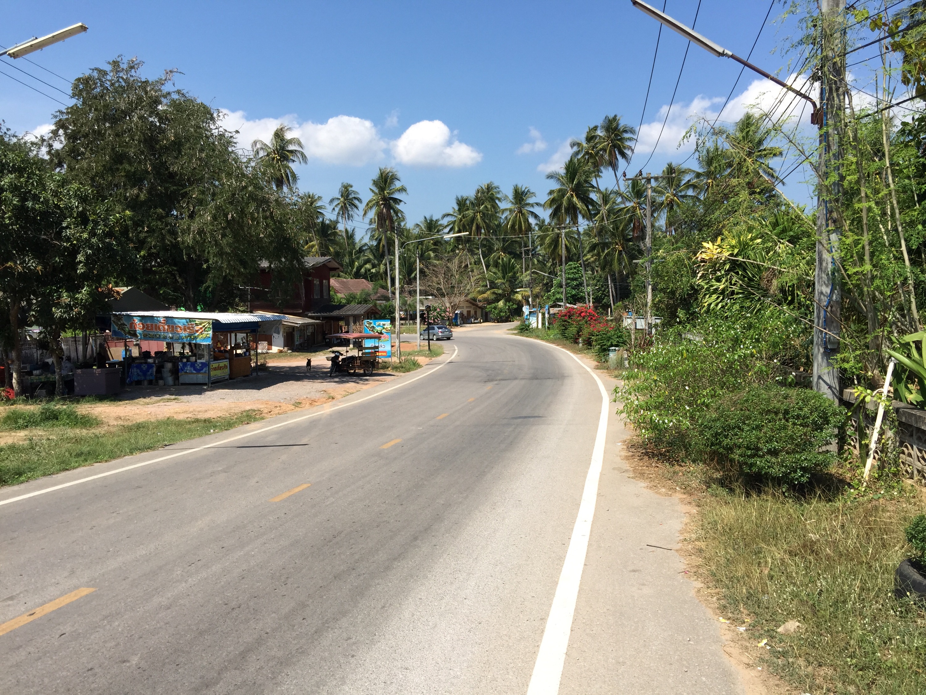 Die Häuschen an der Hauptstraße die durch die Insel führt, gefallen uns ganz gut. Hier könnte es uns auch gefallen. Es gibt kleine Läden und Restaurants die gemütlich aussehen, ist aber zu weit weg von unserem Bungalow.