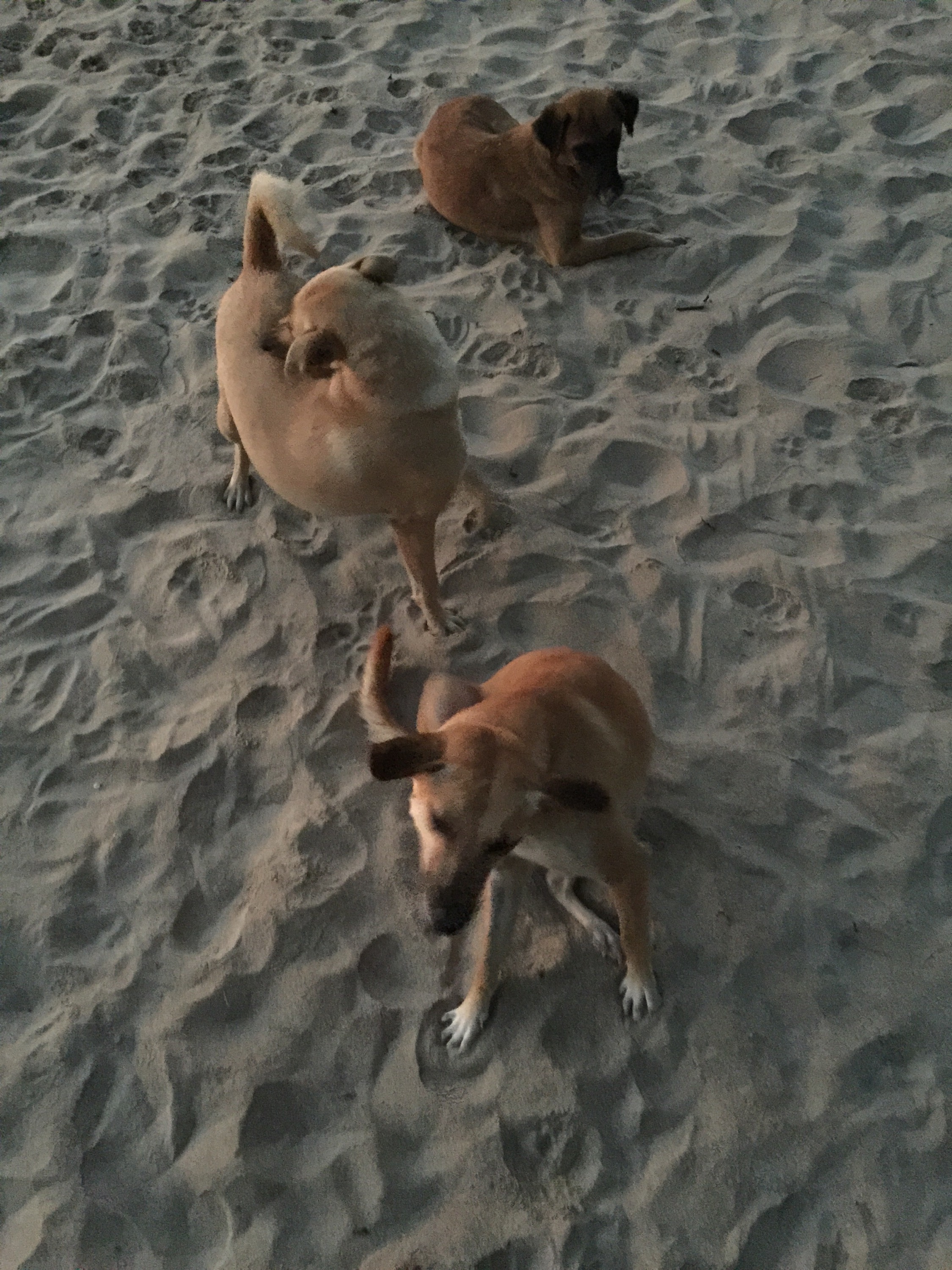 Hunde gibt es viele in Ban Krut, sind aber alle harmlos. Diese „Bestien“ gehören zu dem Wat.