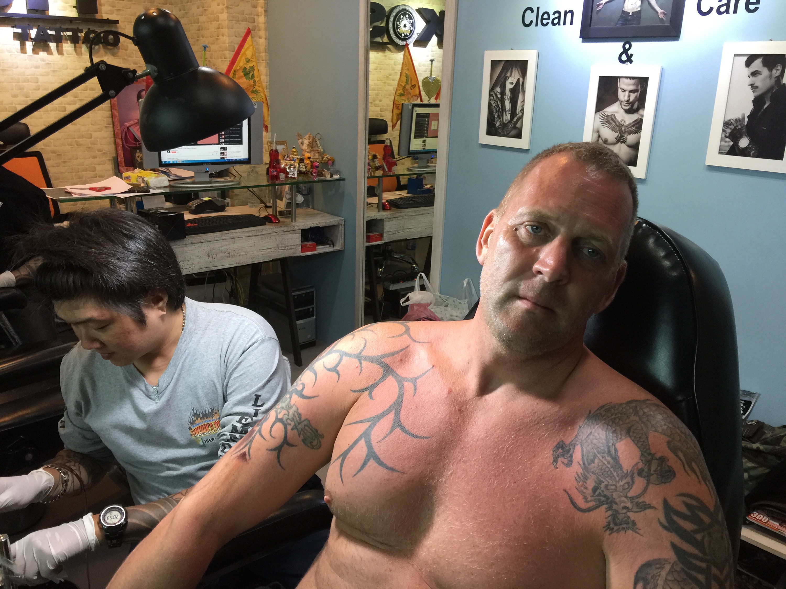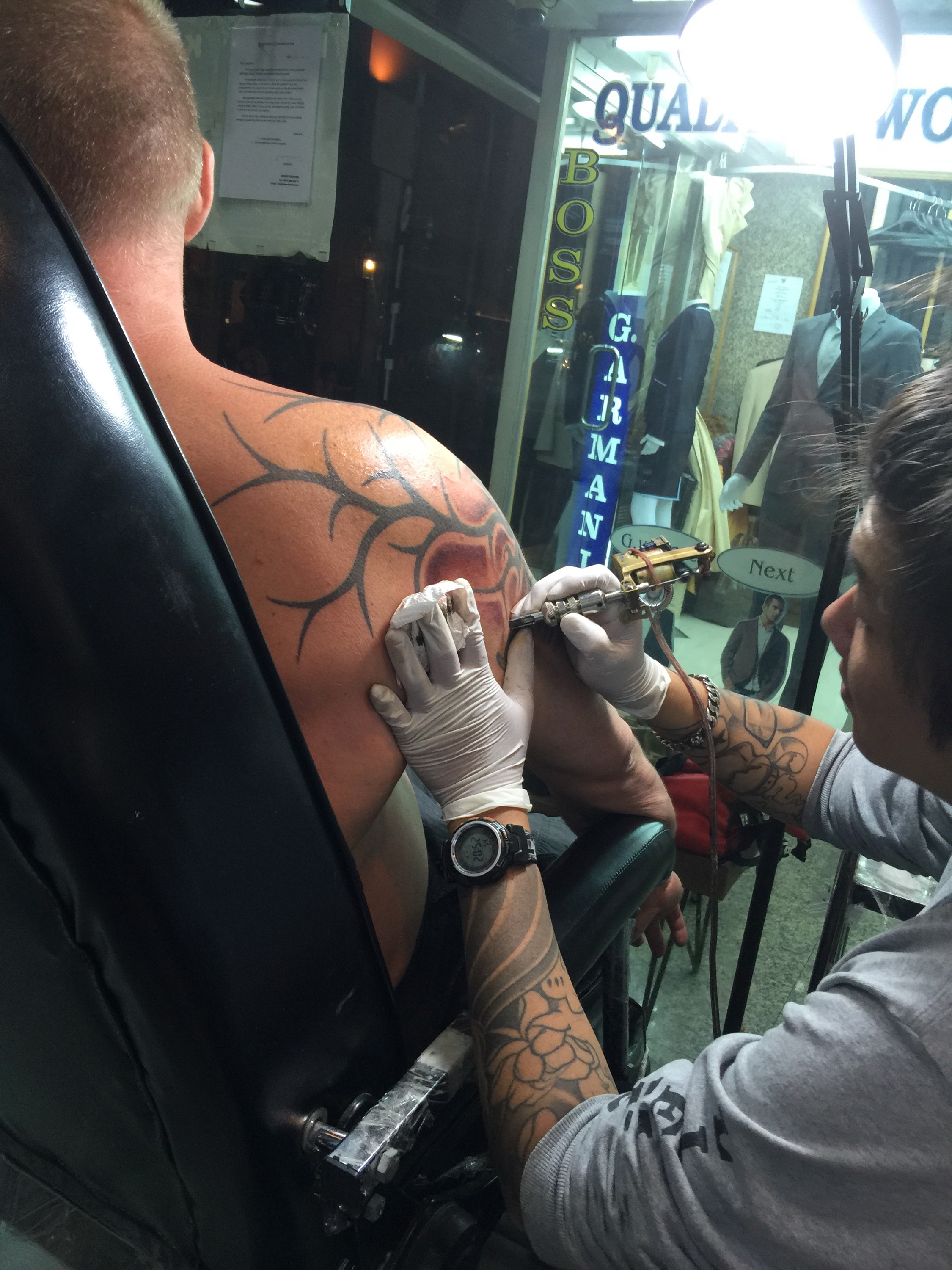 Dann war da noch dieses Tattoostudio. Mal rein zum erkundigen, zum Bearbeiten war was an meinem Körper und Zeit hatten die auch. Ich wollte mein eines älteres Tattoo schon länger überarbeiten lassen. Nun hat es geklappt.